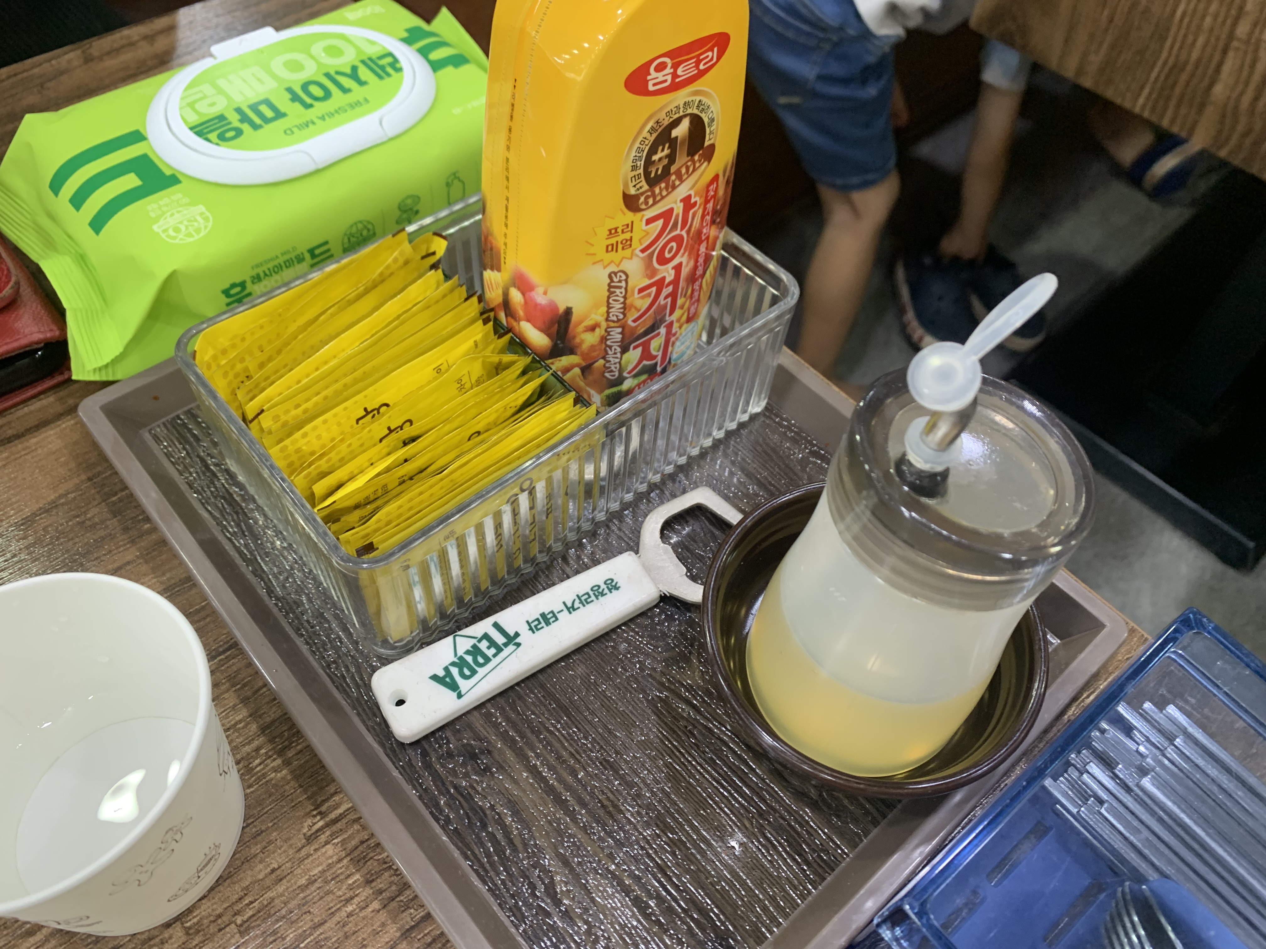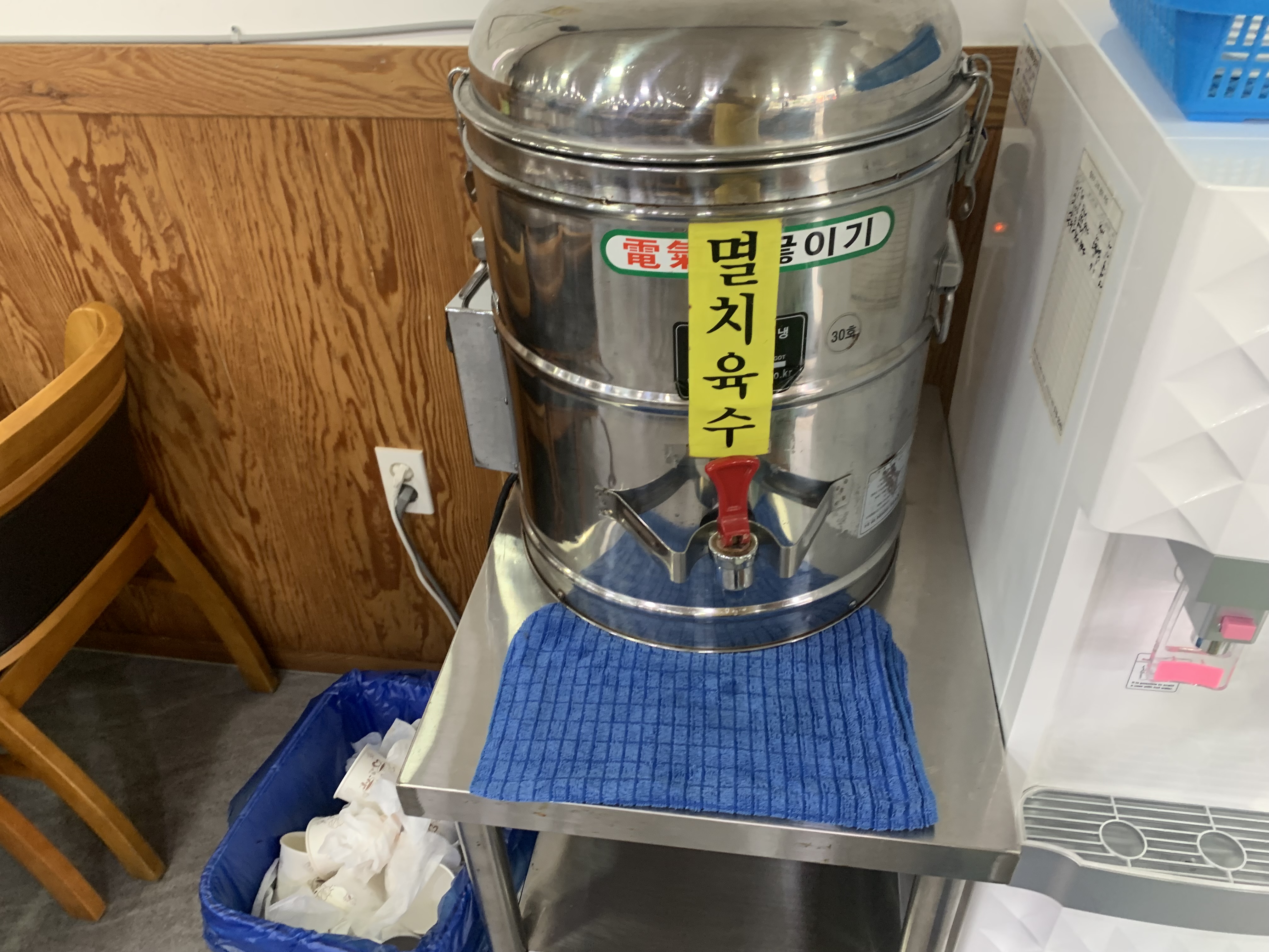 비빔냉면을 주문하면 함께 나오는 육수도 빼놓을 수 없는 포인트입니다. 명인면옥의 육수는 맑고 깨끗한 빛깔로, 한 모금 마시는 순간 깊고 진한 사골의 맛이 느껴졌어요.