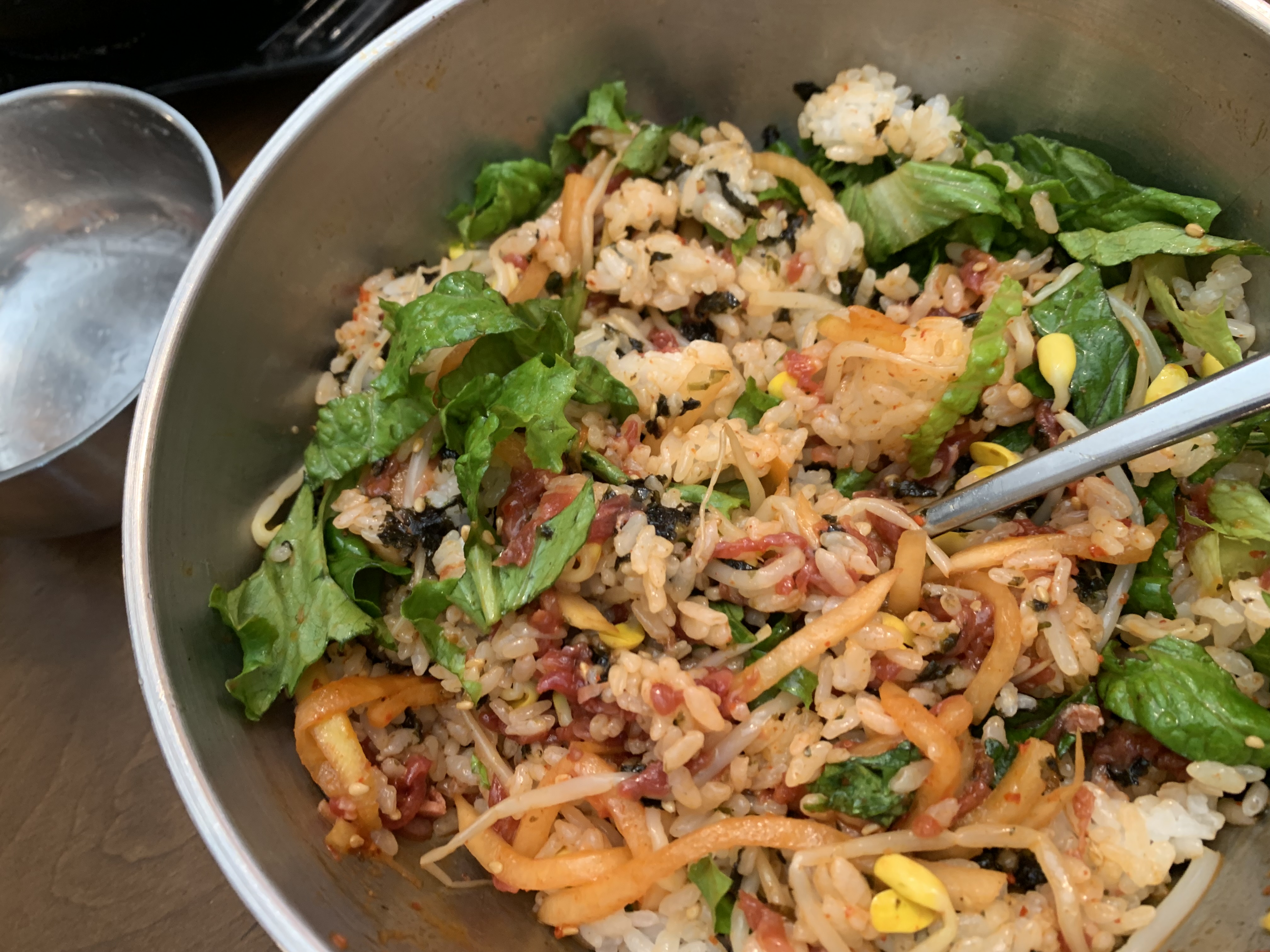 비빔밥 위에 올려진 채소들은 정말 다양했습니다. 신선한 상태의 여러 종류의 야채가 한 입에 들어오는 경험은 단순히 맛있는 것을 넘어 건강함까지 느껴지게 했습니다.