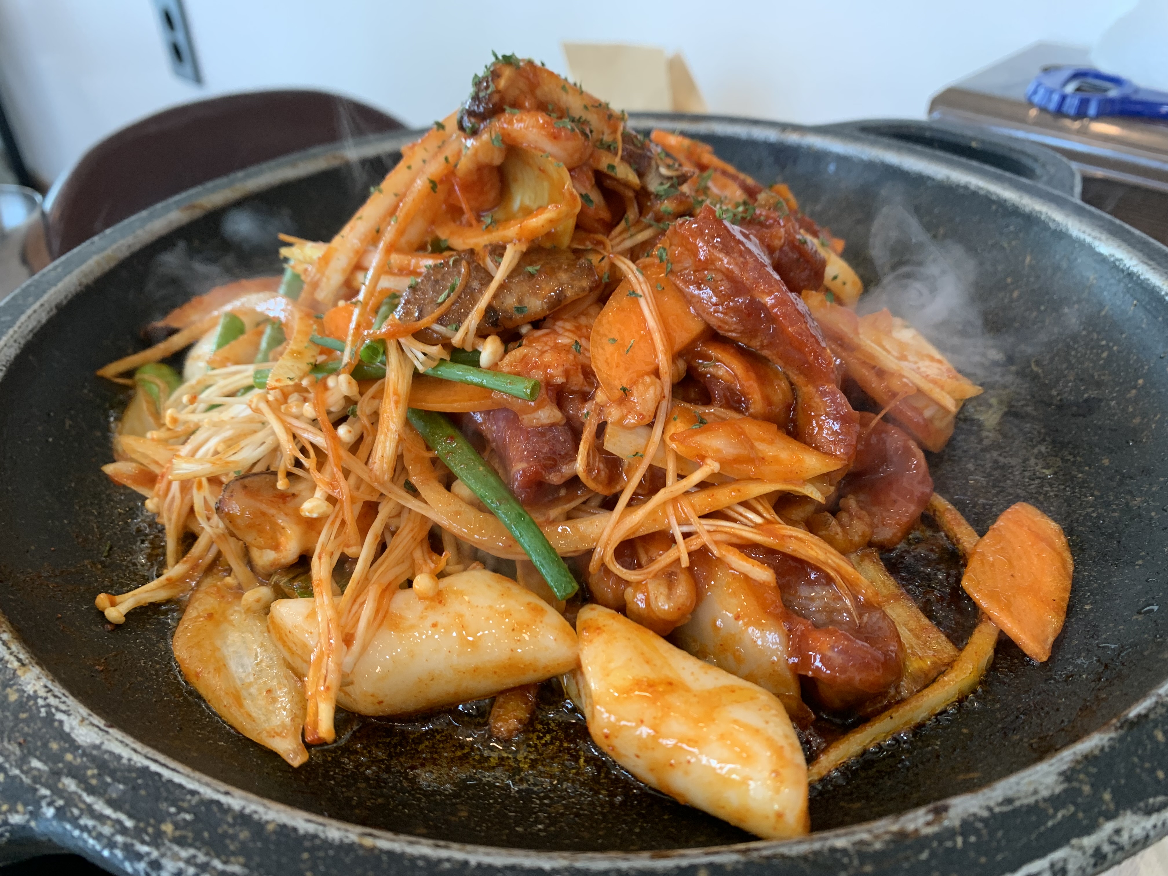 그 외에도 표고버섯, 당근, 그리고 여러 야채들이 함께했습니다. 각각의 재료가 오리주물럭 속에서 자신의 역할을 충실히 하면서도 전체적인 조화를 이루고 있었습니다. 이것은 요리사가 얼마나 신경을 썼는지를 보여주는 증거였습니다.