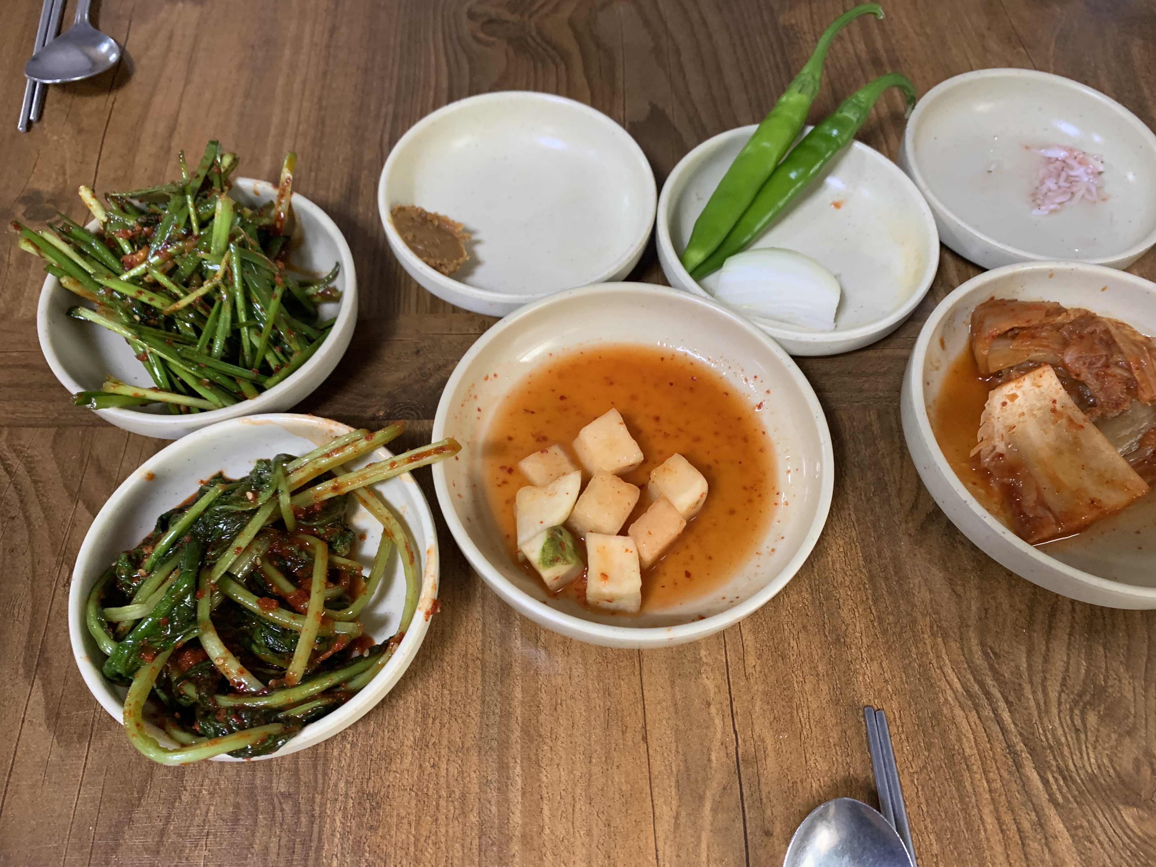 반찬들은 국밥의 진한 맛을 중화시켜주는 역할을 했습니다. 조금 지칠 수 있는 진한 국물의 맛을 여러 반찬들과 함께 먹으면, 입맛이 계속 살아있게 됩니다. 이것이 바로 한국식 밥상문화의 지혜입니다.